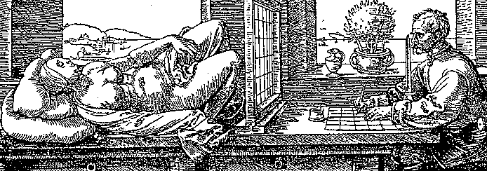 Dürers draftsman records the model with the right eye. Result: Single eye perspective.