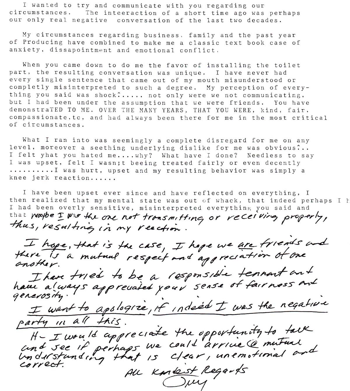 | Friendly... this conditional apology from Terry ca. 2006: (I don't remember what this was about)