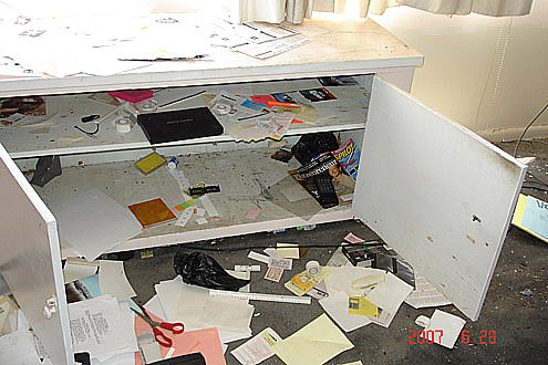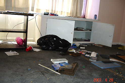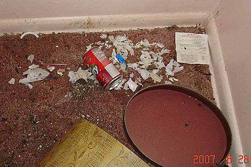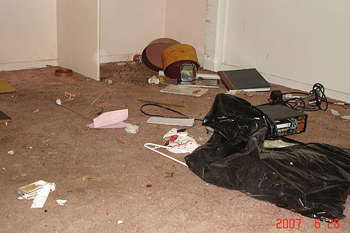 | Below are photos taken on the day Mr. Gillenwater abandoned the apartment. The Living room... These pictures were given as evidence at the time of the trial. | |||||||||||||||||