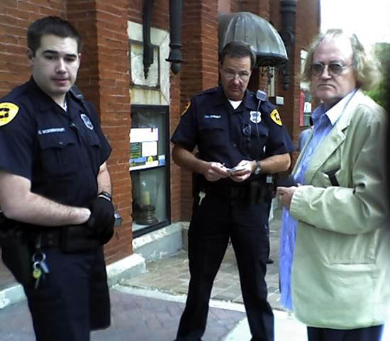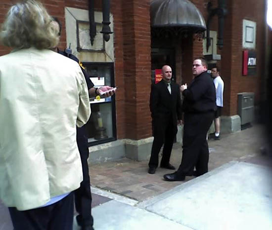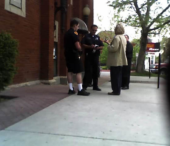The police came; here are the pictures. One of the policemen told me he might call the FBI because my wife took pictures -- the bank building walls happened to be in the background. I'm guessing that's an Islam-related fear, what with 9-11 and all... I don't know. Osama bin Laden might be interested in my wife's snapshots?! I think he's more interested in killing infidels... Mormons, atheists and others; but what do I know.